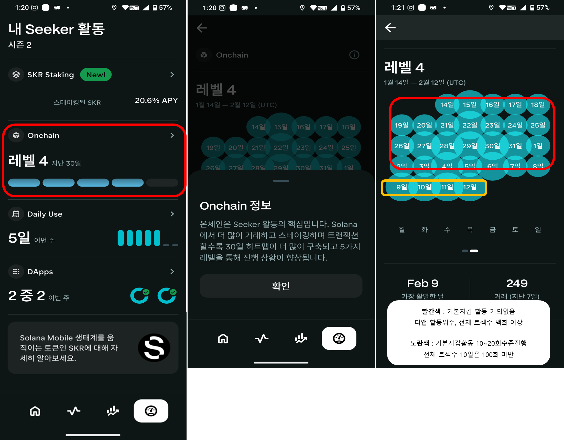이 활동들이 쌓이면 Onchain Lv이 상승하게 됩니다.